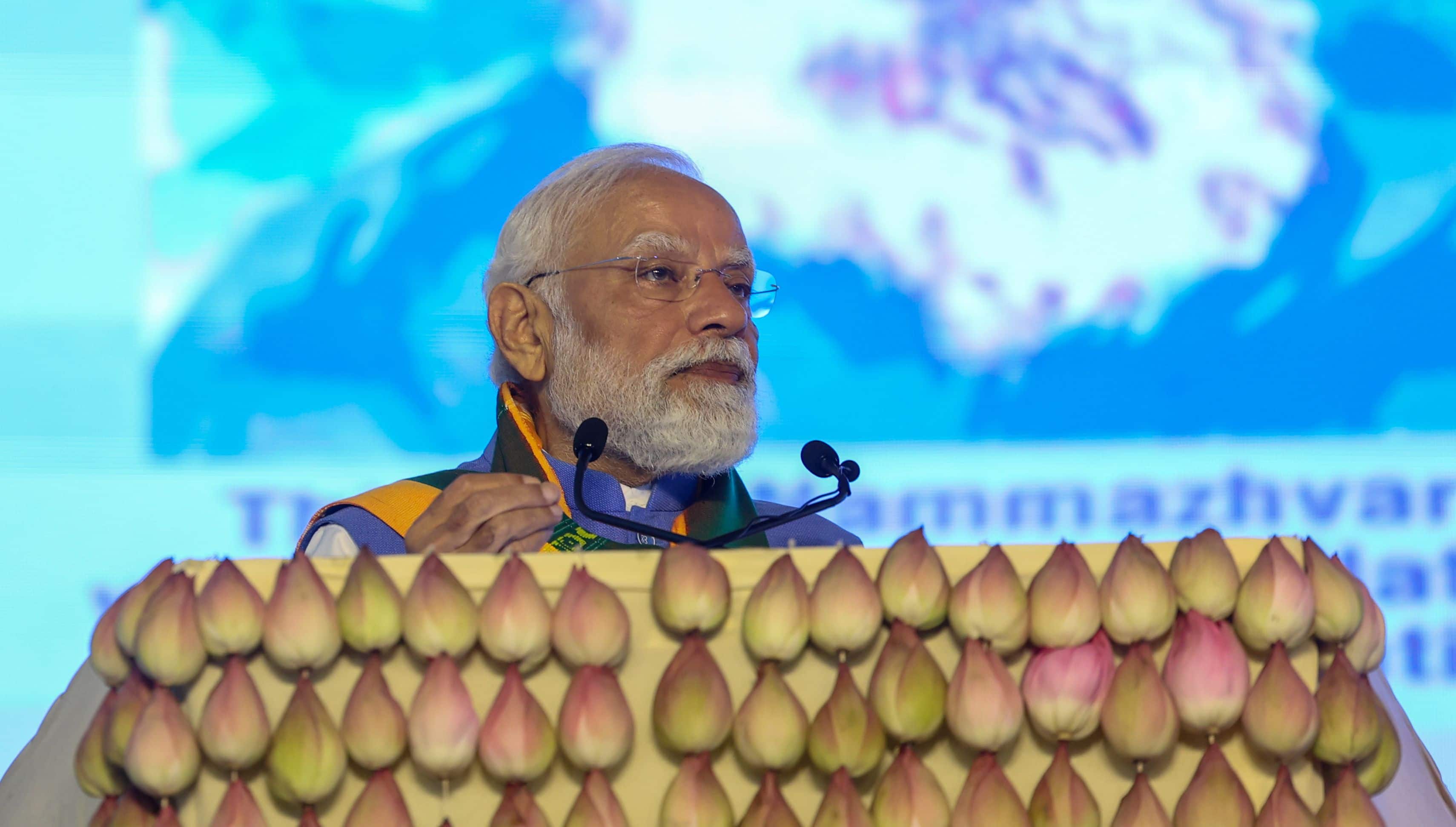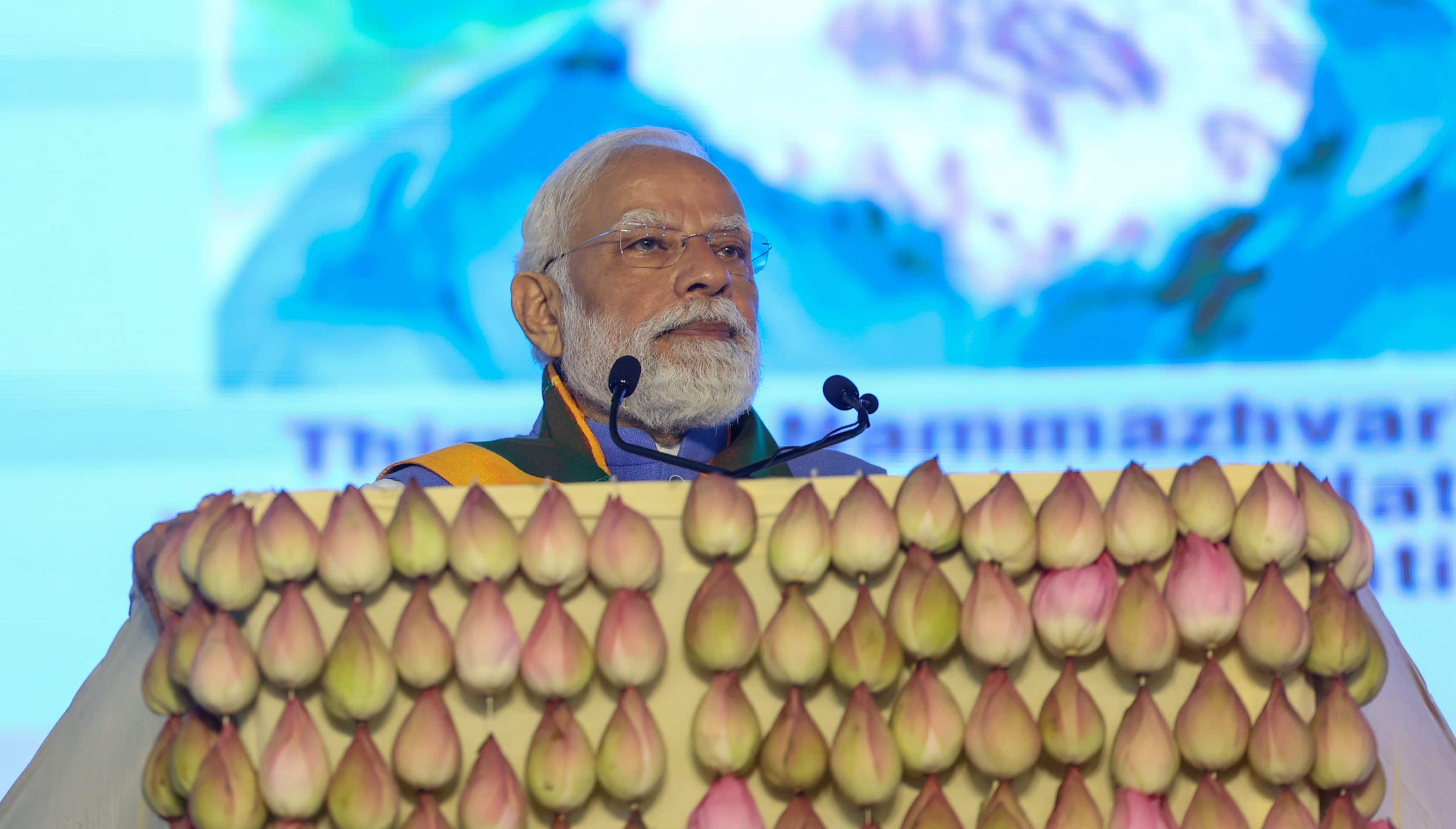 তামিলনাড়ুর রাজ্যপাল আর এন রবিজি, কেন্দ্রীয় মন্ত্রিসভার আমার সহকর্মী এল. মুরুগানজি, তামিলনাড়ু কৃষি বিশ্ববিদ্যালয়ের প্রাক্তন উপাচার্য ড. কে. রামাস্বামীজি, বিভিন্ন কৃষি সংগঠনের বিশিষ্ট ব্যক্তিবর্গ, এখানে উপস্থিত অন্যান্য জনপ্রতিনিধি, আমার প্রিয় কৃষক ভাই ও বোনেরা এবং ডিজিটাল প্রযুক্তির মাধ্যমে আমাদের সঙ্গে যোগদানকারী দেশব্যাপী লক্ষ লক্ষ কৃষক! আমি আপনাদের সকলকে ভানাক্কম এবং নমস্কার দিয়ে শুভেচ্ছা জানাচ্ছি। প্রথমেই আমি আপনাদের সকলের কাছে এবং সারা দেশের কৃষক ভাই-বোনেদের কাছে ক্ষমা চাইছি। আজ সকালে আমি সত্য সাই বাবার প্রতি নিবেদিত একটি অনুষ্ঠানে যোগদানের জন্য পুট্টাপার্থিতে ছিলাম এবং সেখানে অনুষ্ঠানটি নির্ধারিত সময়ের থেকে বেশিক্ষণ ধরে চলায় আমার এখানে পৌঁছতে প্রায় এক ঘন্টা দেরি হয়েছে। এর ফলে আপনাদের যেকোনো অসুবিধার জন্য আমি আন্তরিকভাবে ক্ষমা চাইছি। সারা দেশের অনেক মানুষ অপেক্ষা করছেন, আমি আরো একবার আপনাদের কাছে ক্ষমাপ্রার্থী।