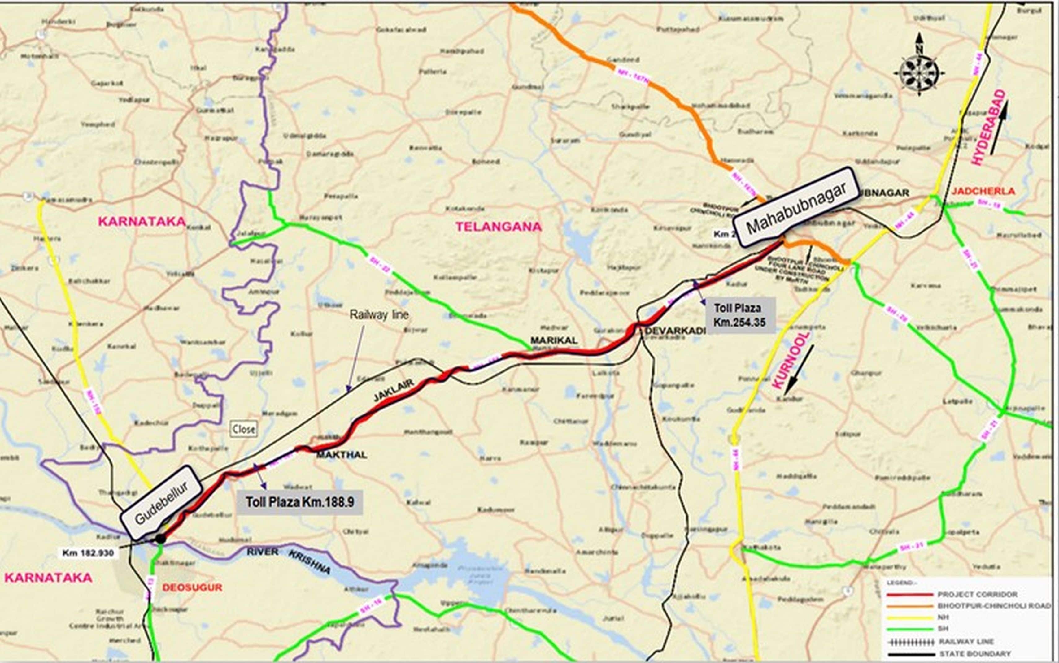 Gudebellur – Mahabubnagar section of Hyderabad – Panaji Economic Corridor |