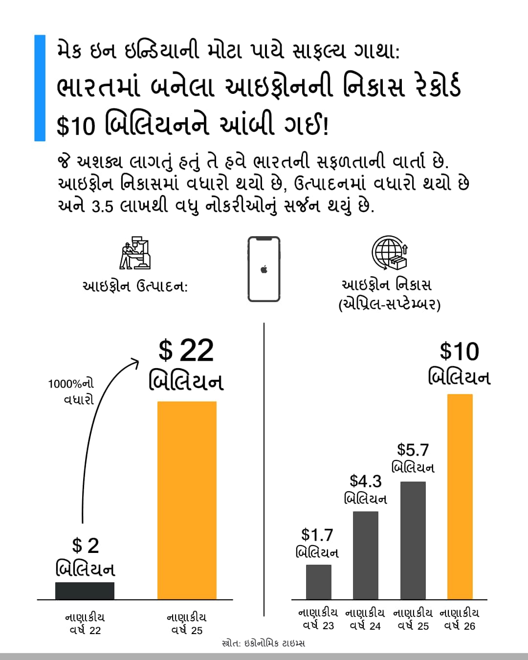 મેક ઇન ઇન્ડિયાની મોટા પાયે સાફલ્ય ગાથા : ભારતમાં બનેલા આઇફોનની નિકાસ રેકોર્ડ $10 બિલિયનને આંબી ગઈ!