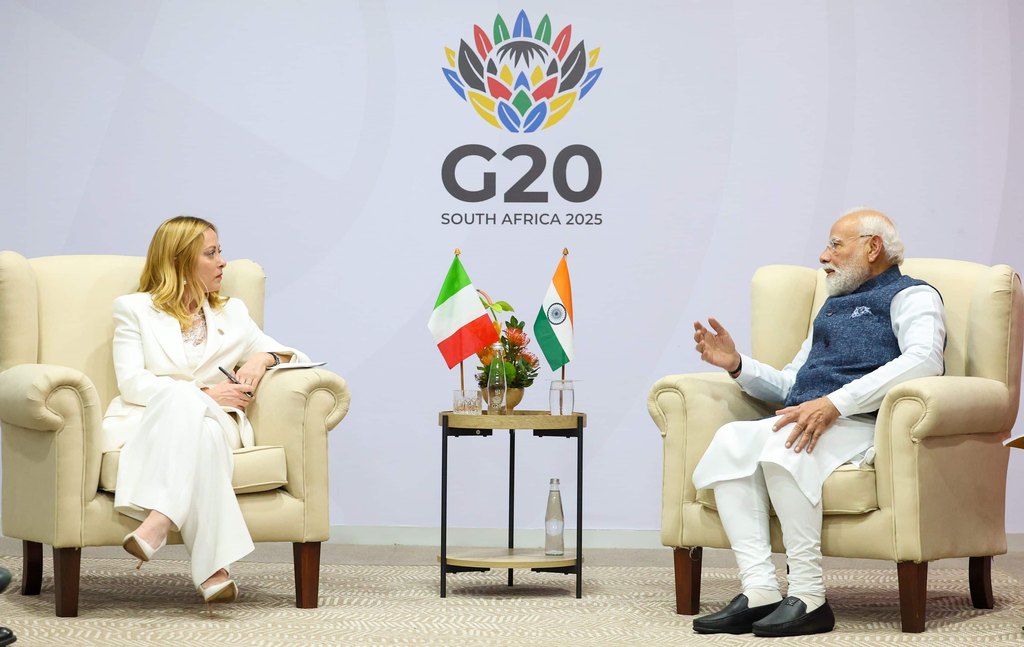 ભારતના માનનીય પ્રધાનમંત્રી શ્રી નરેન્દ્ર મોદી આજે દક્ષિણ આફ્રિકાના જોહાનિસબર્ગમાં G20 સમિટ દરમિયાન ઇટાલીના પ્રધાનમંત્રી શ્રીમતી જ્યોર્જિયા મેલોની સાથે મળ્યા હ. આ વર્ષે જૂનમાં કેનેડાના કનાનાસ્કિસમાં G7 સમિટ દરમિયાન બંને નેતાઓએ ટૂંકી વાતચીત કરી હતી.