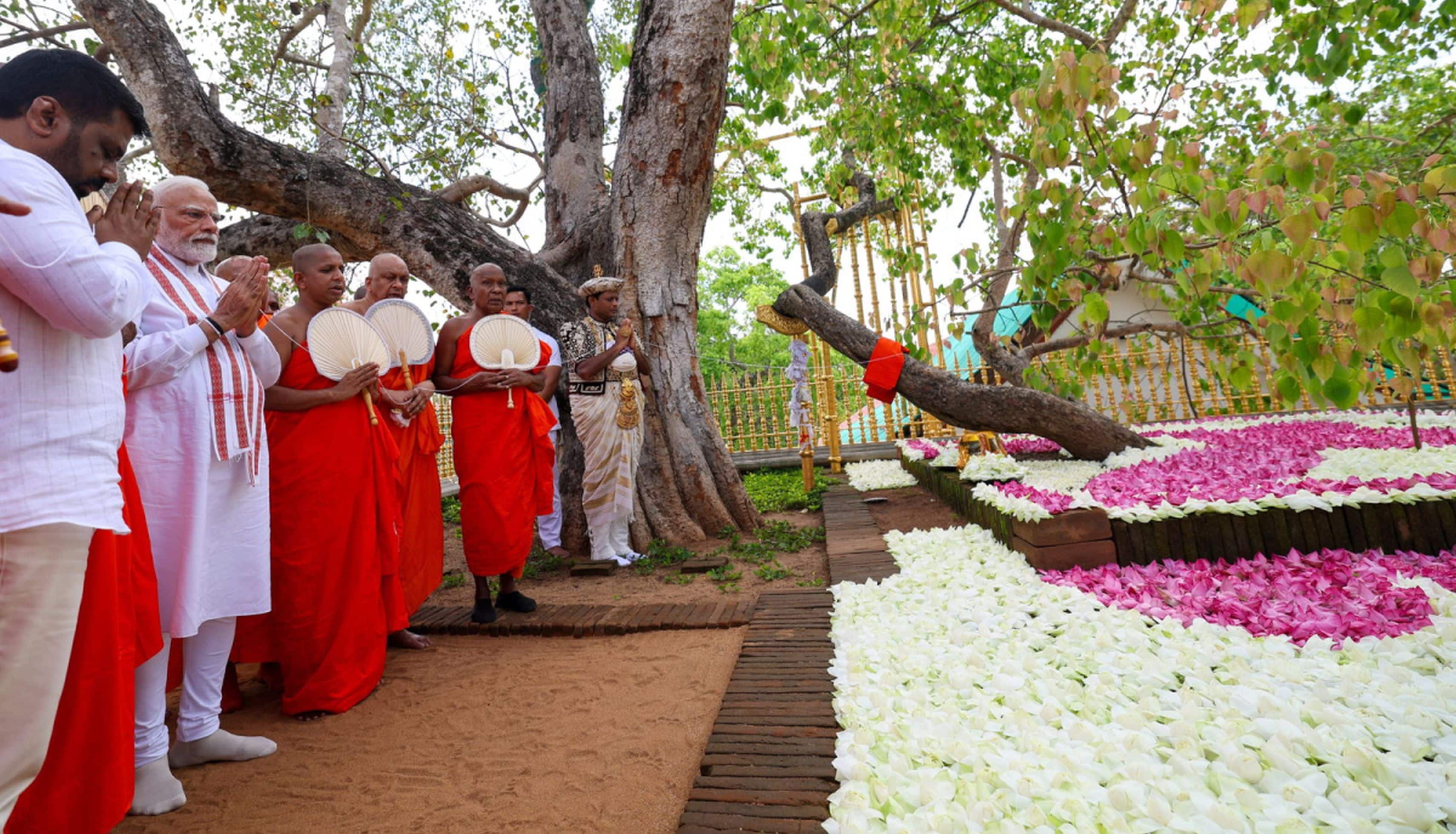 પ્રધાનમંત્રી શ્રી નરેન્દ્ર મોદીએ શ્રીલંકાના રાષ્ટ્રપતિ મહામહિમ અનુરા કુમારા દિસાનાયક સાથે, અનુરાધાપુરામાં પવિત્ર જયા શ્રી મહાબોધિ મંદિરની મુલાકાત લીધી અને પૂજનીય મહાબોધિ વૃક્ષ પર પ્રાર્થના કરી.