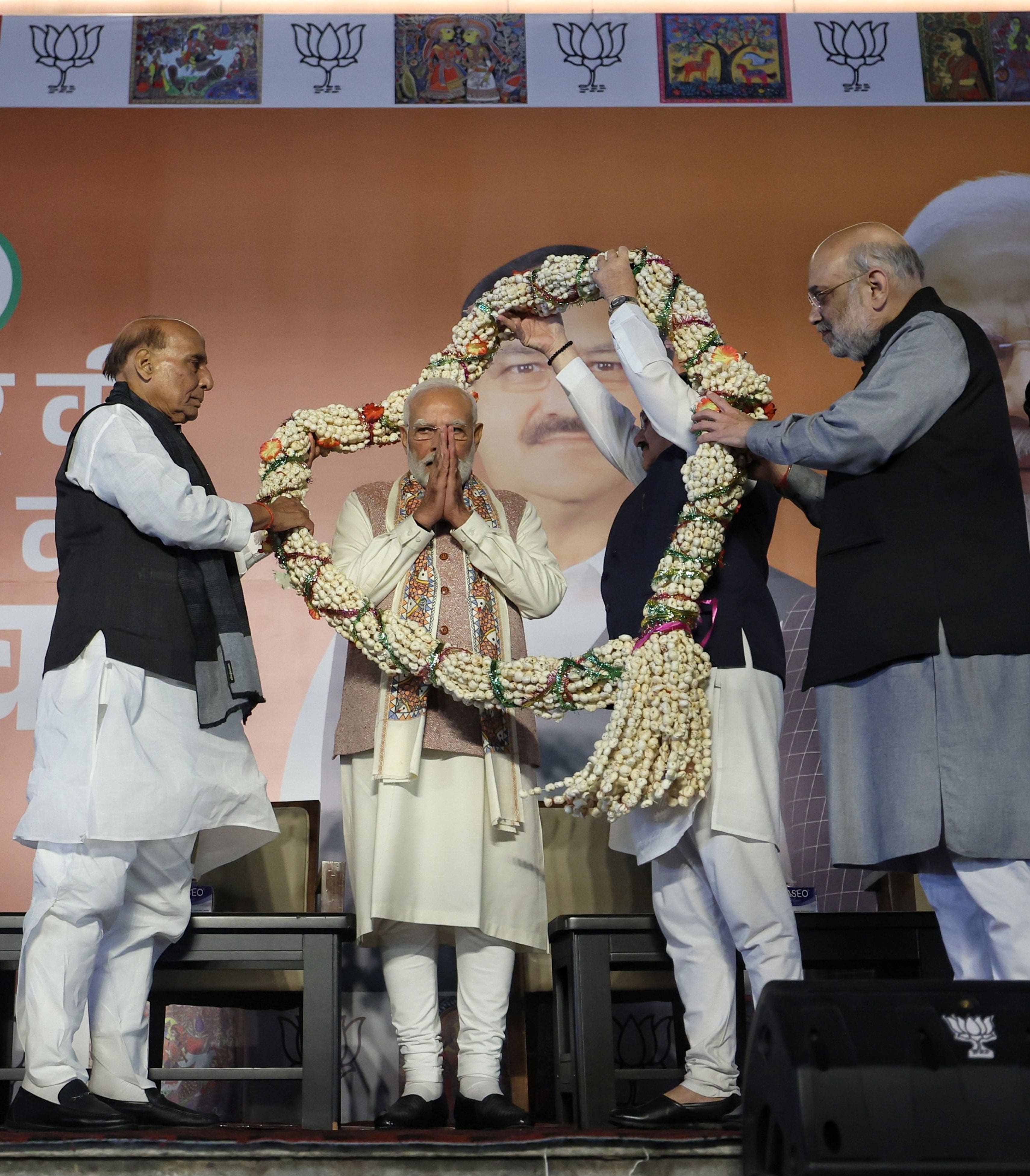 प्रधानमंत्री ने अपने भाषण के समापन पर कहा कि आज की ये विजय, एक नई यात्रा की शुरुआत है। बिहार ने जो भरोसा हम पर जताया है, इससे हमारे कंधों पर जिम्मेदारी और बढ़ गई है। मैं आपको विश्वास दिलाता हूं कि आने वाले पांच सालों में बिहार और तेज गति से आगे बढ़ेगा। हम मिलकर एक ऐसा बिहार बनाएंगे, जो समृद्ध और विकसित होगा। पीएम ने कहा कि आज भाजपा की हर सफलता का आधार उसका कार्यकर्ता ही है। आज की इस विजय ने भाजपा कार्यकर्ताओं को केरल, तमिलनाडु, पुडुचेरी, असम और पश्चिम बंगाल में भी नई ऊर्जा से भर दिया है। प्रधानमंत्री ने याद दिलाते हुए कहा कि गंगा जी यहां बिहार से बहते हुए ही बंगाल तक पहुंचती हैं। बिहार ने बंगाल में भाजपा की विजय का रास्ता भी बना दिया है। बंगाल के बहनों-भाइयों को भी आश्वस्त करता हूं कि अब भाजपा आपके साथ मिलकर पश्चिम बंगाल से भी जंगलराज को उखाड़ फेंकेगी।