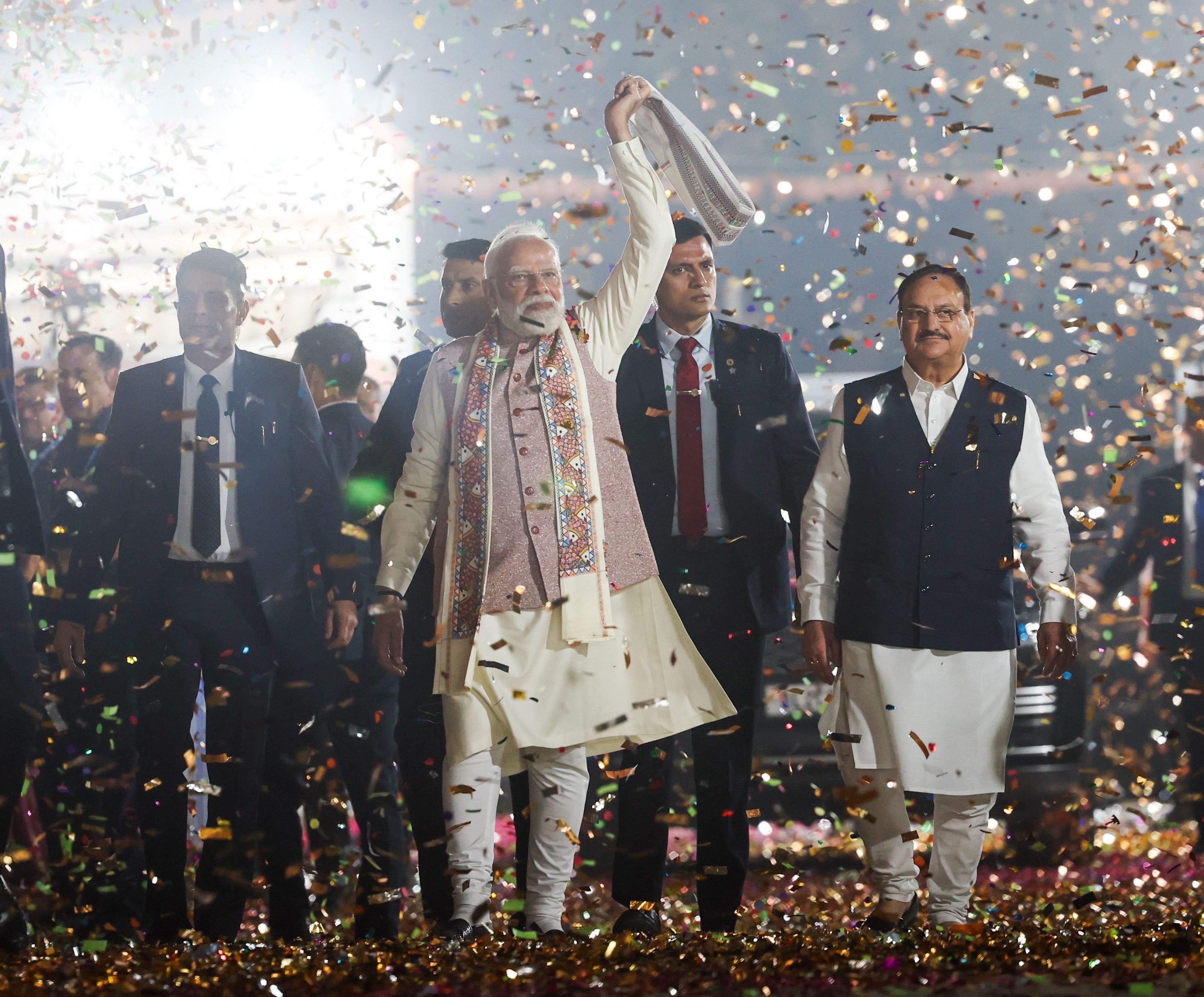 प्रधानमंत्री नरेन्द्र मोदी ने बिहार में मिली ऐतिहासिक जीत के उपलक्ष्य में दिल्ली के पार्टी मुख्यालय पर भाजपा कार्यकर्ताओं को संबोधित किया। अपने संबोधन के दौरान उन्होंने कहा कि भारत के लोकतंत्र की जननी बिहार की धरती ने जनतंत्र पर हमला करने वाली ताकतों को धूल चटा दी है। बिहार ने फिर दिखाया है कि झूठ हारता है और जनविश्वास जीतता है। देश हो या प्रदेश सभी जगह सच्चे सामाजिक न्याय के लिए वोट किए जा रहे हैं। अब तुष्टिकरण की जगह, संतुष्टिकरण ने ले ली है। लोग सिर्फ तेज विकास के साथ विकसित भारत बनाना चाहते हैं। पीएम मोदी ने कहा कि बिहार में कुछ दलों ने तुष्टिकरण वाला M Y यानि माय फार्मूला बनाया था। आज की इस जीत ने एक सकारात्मक नया M Y फार्मूला दिया है। और ये है- महिला और यूथ। ये बिहार में जंगलराज देने वाली कट्टा सरकार को वापस नहीं आने देंगे।