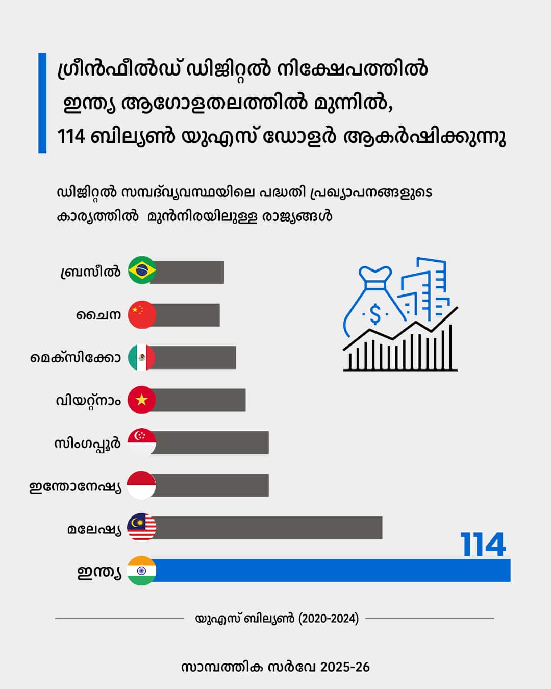 ഗ്രീൻഫീൽഡ് ഡിജിറ്റൽ നിക്ഷേപത്തിൽ ഇന്ത്യ ആഗോളതലത്തിൽ മുന്നിൽ, 114 ബില്യൺ യുഎസ് ഡോളർ ആകർഷിക്കുന്നു