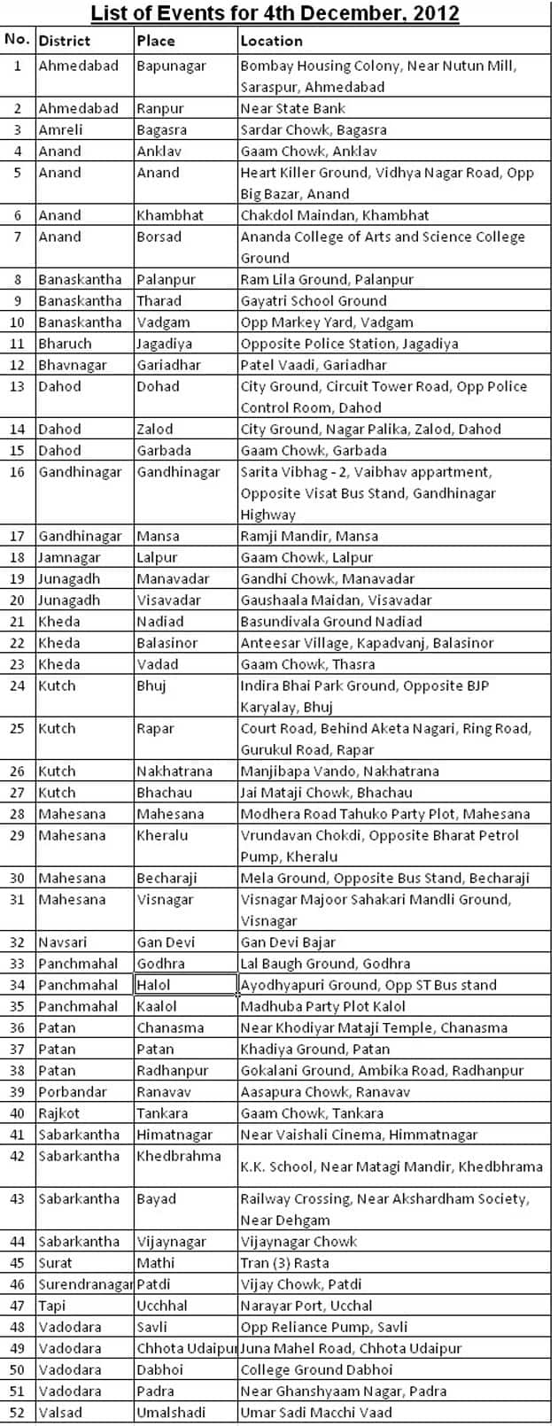 Continuing his historic use of 3D projection technology to interact with people, Shri Modi will address people across 52 places of Gujarat simultaneously using the 3D projection technology 6:00 PM onwards on Tuesday 4th December 2012.