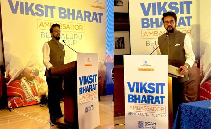 Bengaluru: "Desh me ek hi guarantee chalti hai, Modi Ki.." Says Union Minister Anurag Thakur at Viksit Bharat Ambassadors' programme. pic.twitter.com/NFLzvhwpht
