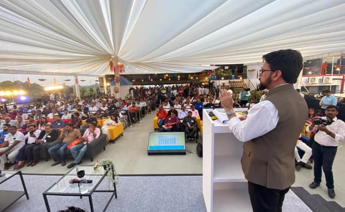 The second event was held at BHive Co-working Space, where a larger crowd of more than 400 people, comprising the city's top businesspeople, professionals, and entrepreneurs, discussed ways to collaborate and achieve Viksit Bharat's goal meaningfully. Entrepreneurs, leading professionals, Presidents of prominent associations, differently-abled sports persons, and many others attended the event. Prominent individuals such as Mr Mohandas Pai, Dr Nupur Handa- FLO President, and Mr Achyut Gowda graced the event.