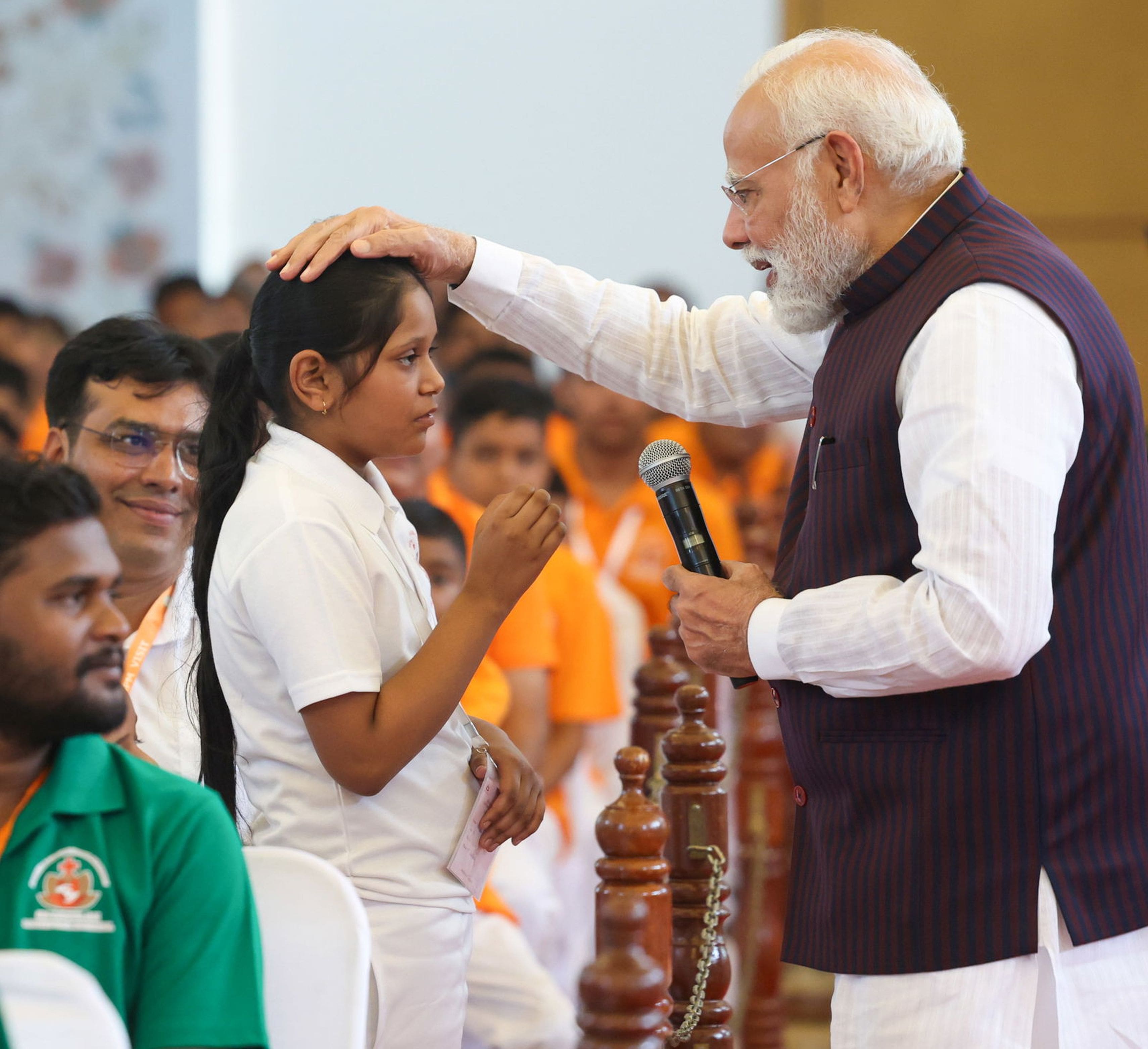 ପ୍ରଧାନମନ୍ତ୍ରୀ- ମୋତେ ନ୍ୟୁଜ୍ରେ ଦେଖିଥିଲ, ଭଲ । ଆପଣମାନଙ୍କ ସହ କଥା ହୋଇ ମୋତେ ବହୁତ ଖୁସି ଲାଗିଲା । ବର୍ତ୍ତମାନ ଯଦି ଆପଣଙ୍କୁ କୌଣସି ଭଲ କାମ କରିବାକୁ ଅଛି, ତେବେ ତାହାର ଉପାୟ ହେଉଛି, ଆମର ଶରୀର, ଏଥିପାଇଁ ଆପଣଙ୍କୁ ବହୁତ ସତର୍କ ରହିବାକୁ ପଡିବ । ରଖିବେ ? ନିଶ୍ଚିତ ରଖିବେ ? ଠିକ୍ ଅଛି ଆପଣଙ୍କୁ ମୋର ବହୁତ-ବହୁତ ଶୁଭକାମନା।