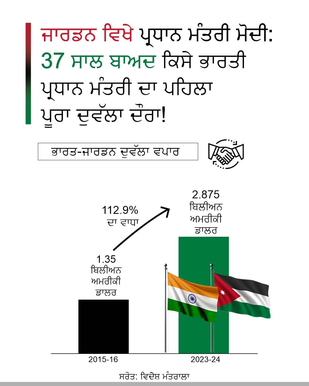 ਜਾਰਡਨ ਵਿਖੇ ਪ੍ਰਧਾਨ ਮੰਤਰੀ ਮੋਦੀ: 37 ਸਾਲ ਬਾਅਦ ਕਿਸੇ ਭਾਰਤੀ ਪ੍ਰਧਾਨ ਮੰਤਰੀ ਦਾ ਪਹਿਲਾ ਪੂਰਾ ਦੁਵੱਲਾ ਦੌਰਾ!