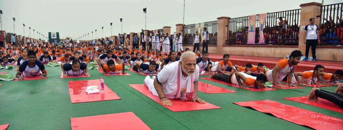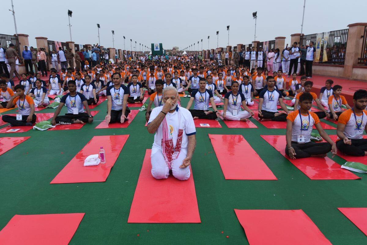 PM Modi participates in mass yoga demonstration in Lucknow, Uttar Pradesh