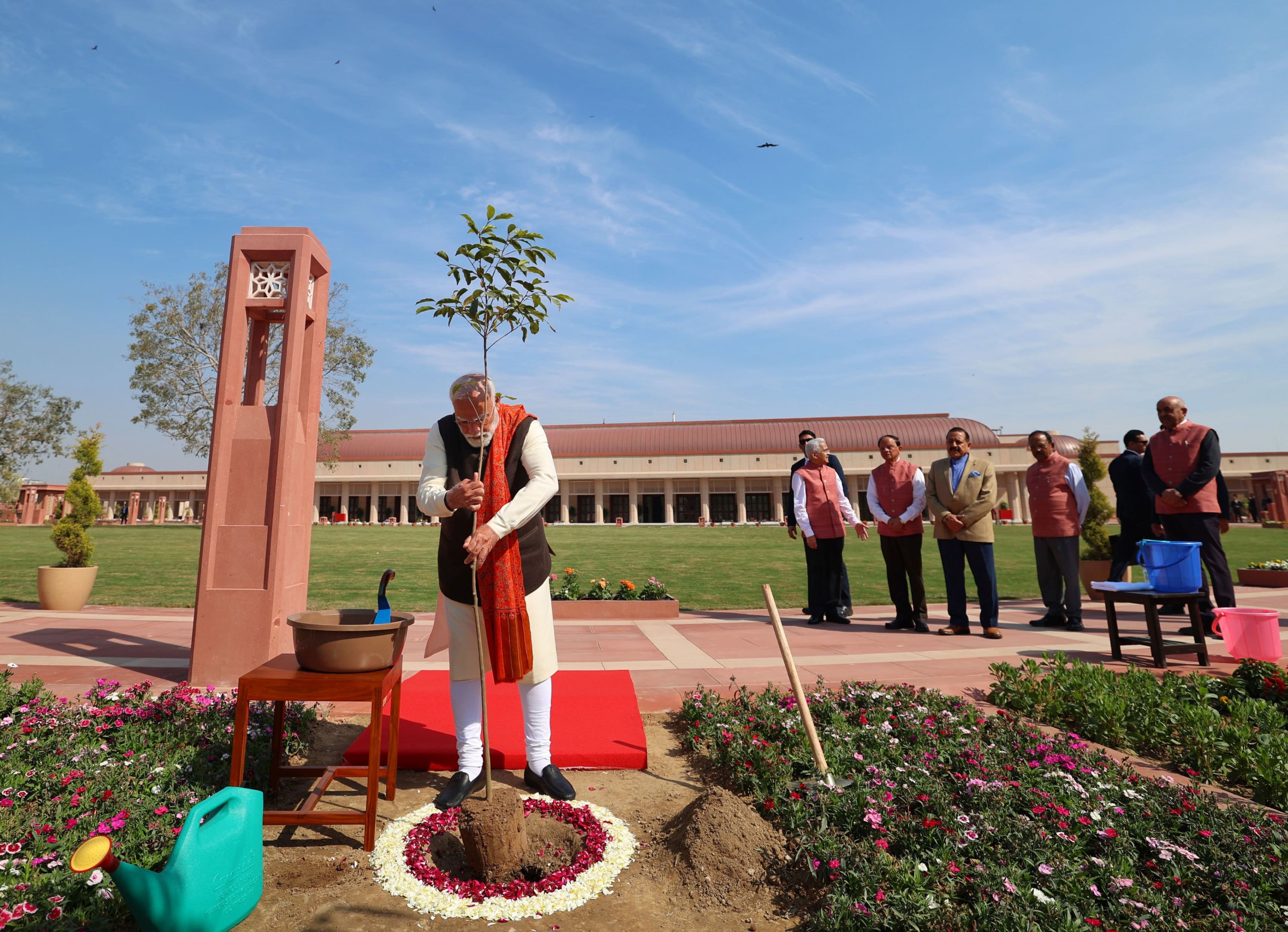 PM Modi plants a sapling at Seva Teerth.