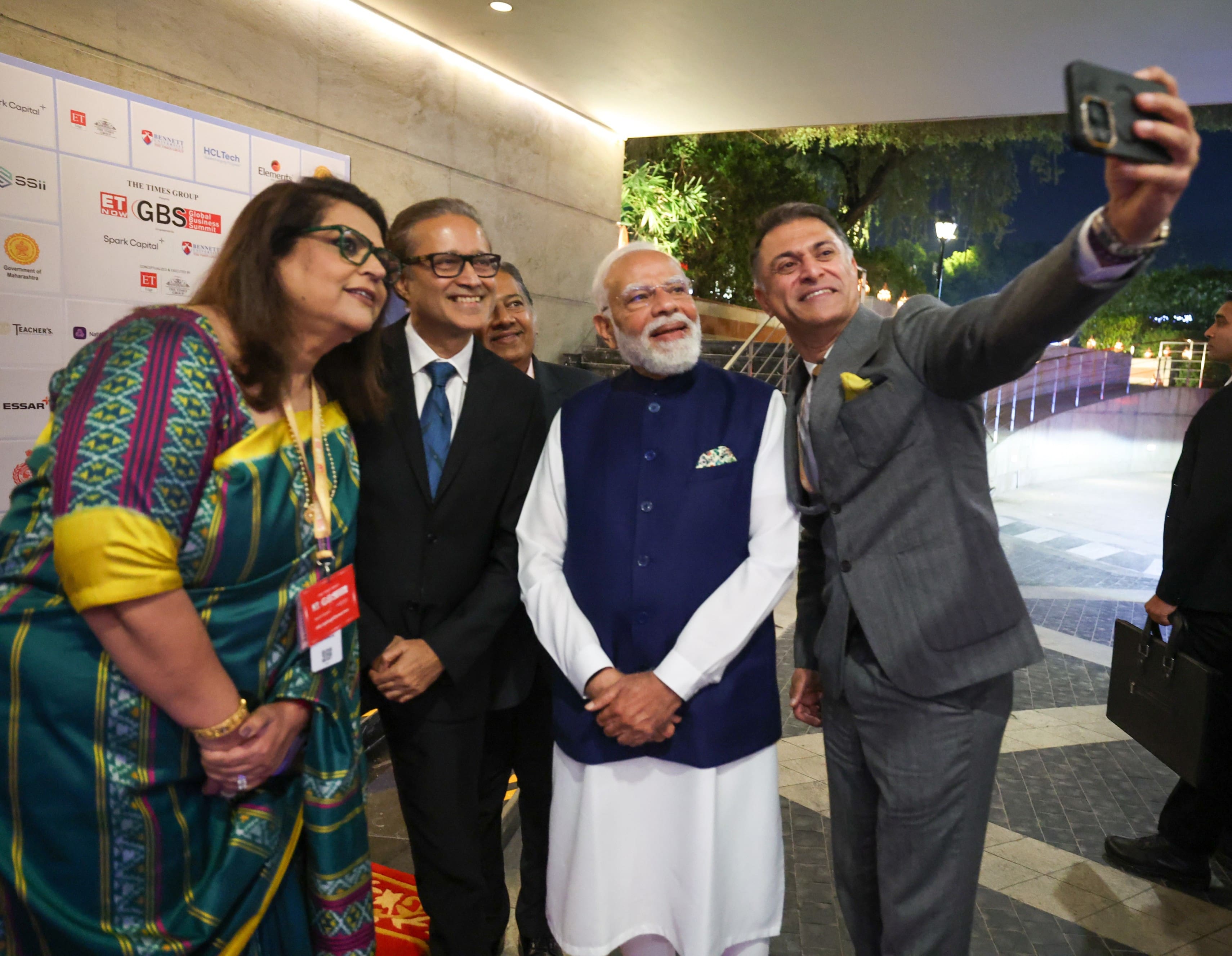 Journalists flock for a selfie with PM Modi ahead of the ET Now Global Business Summit in New Delhi.