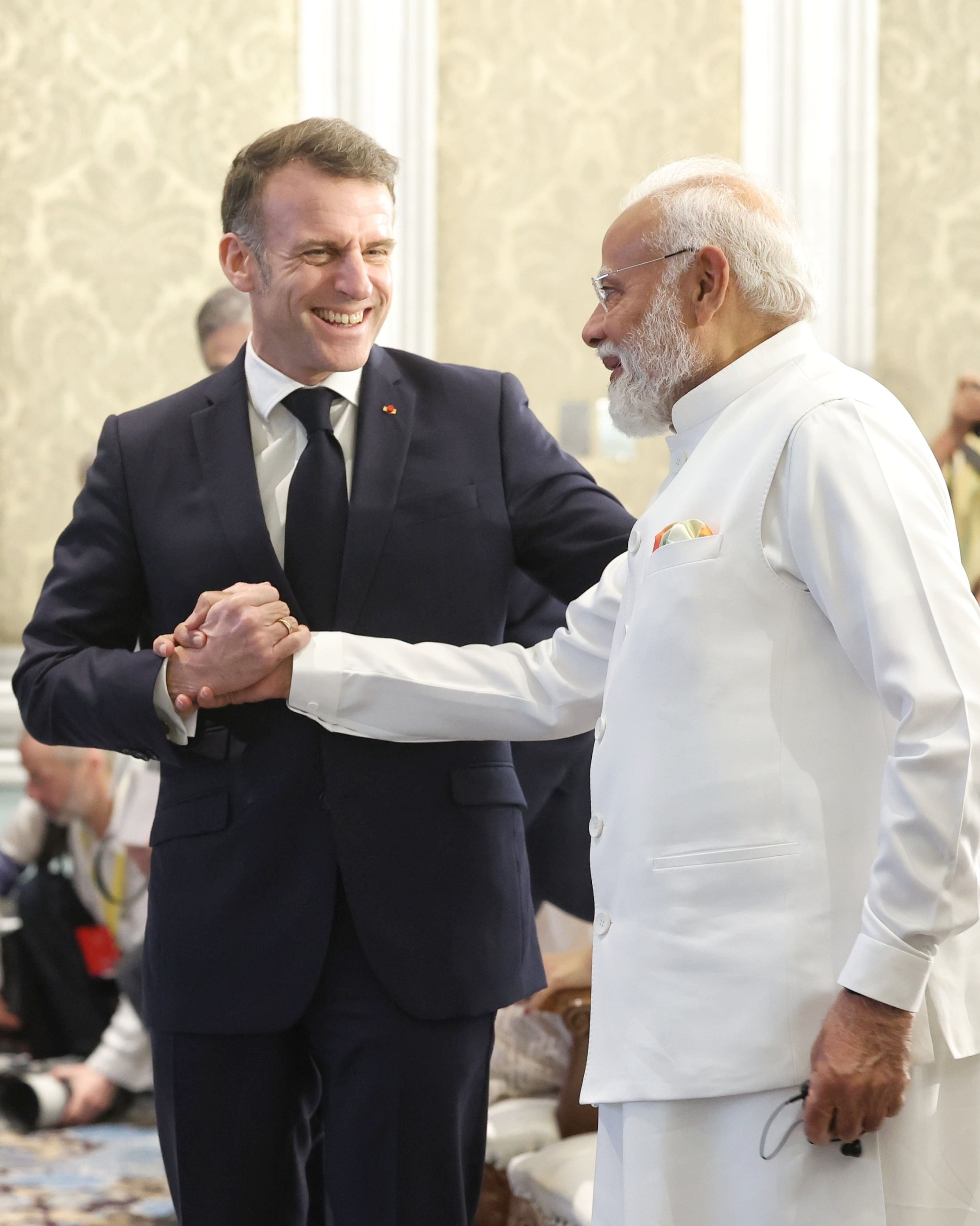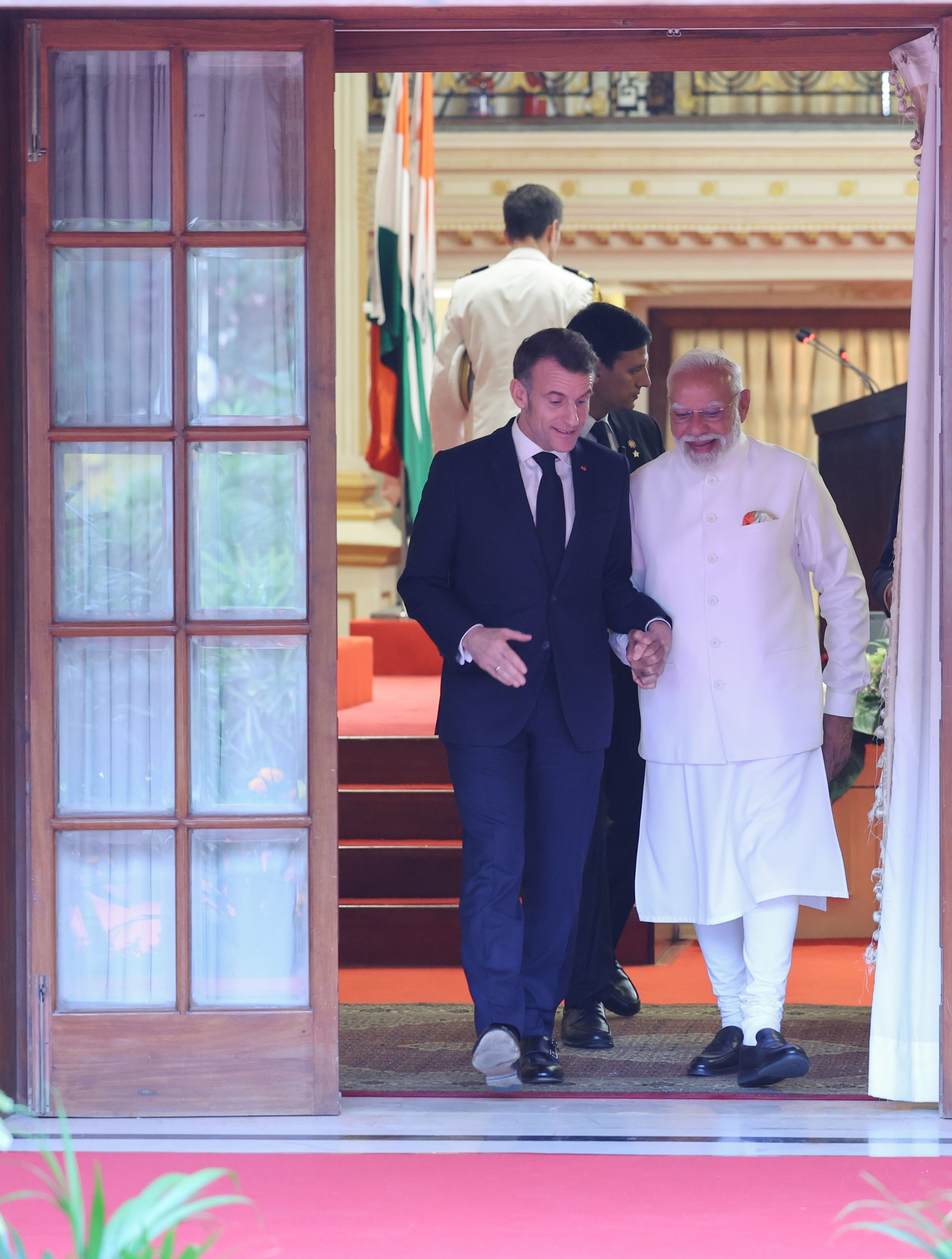PM Modi and French President Macron in Mumbai.