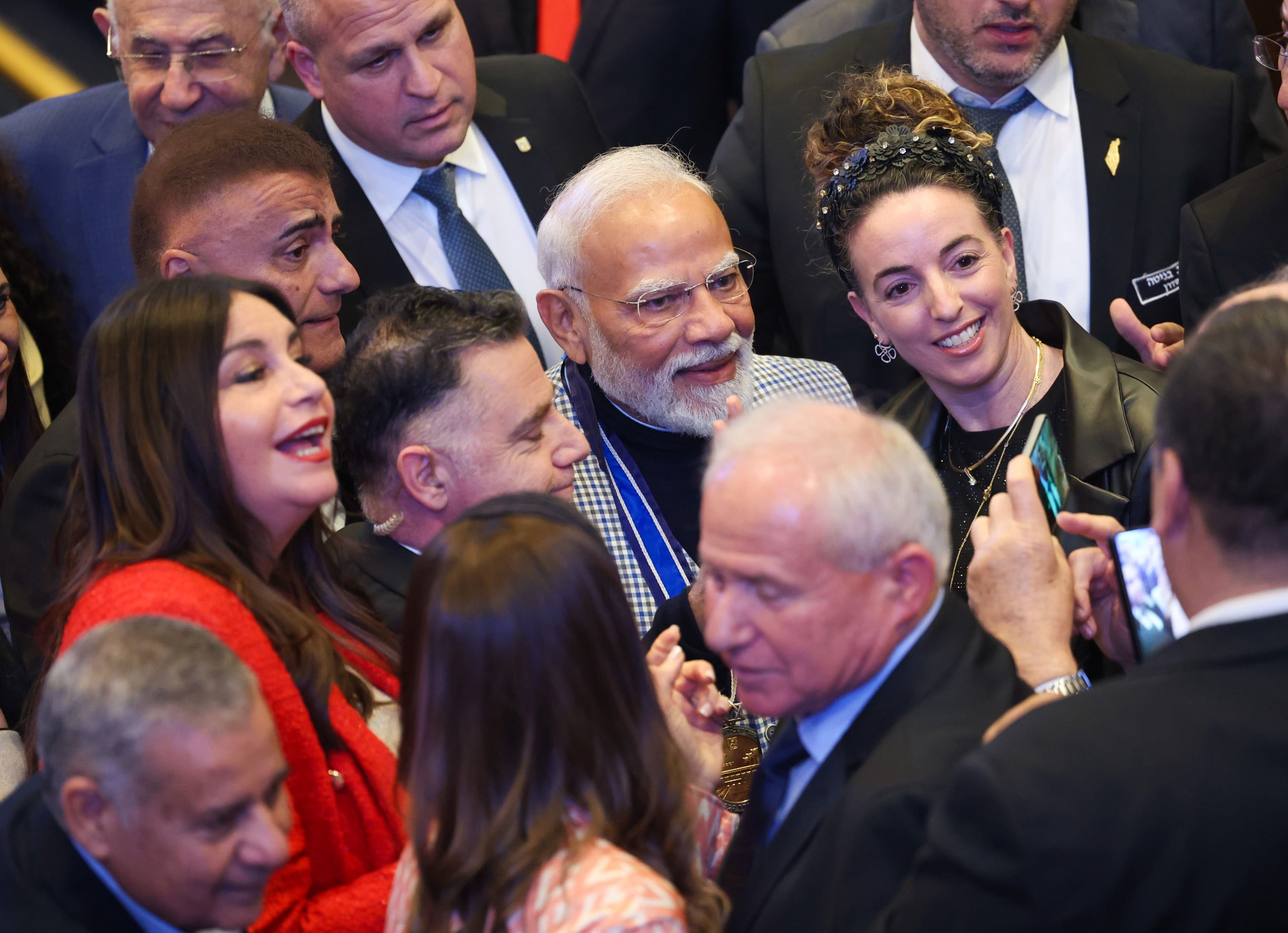 Israeli MPs flock PM Modi for selfies after historic Knesset address.
