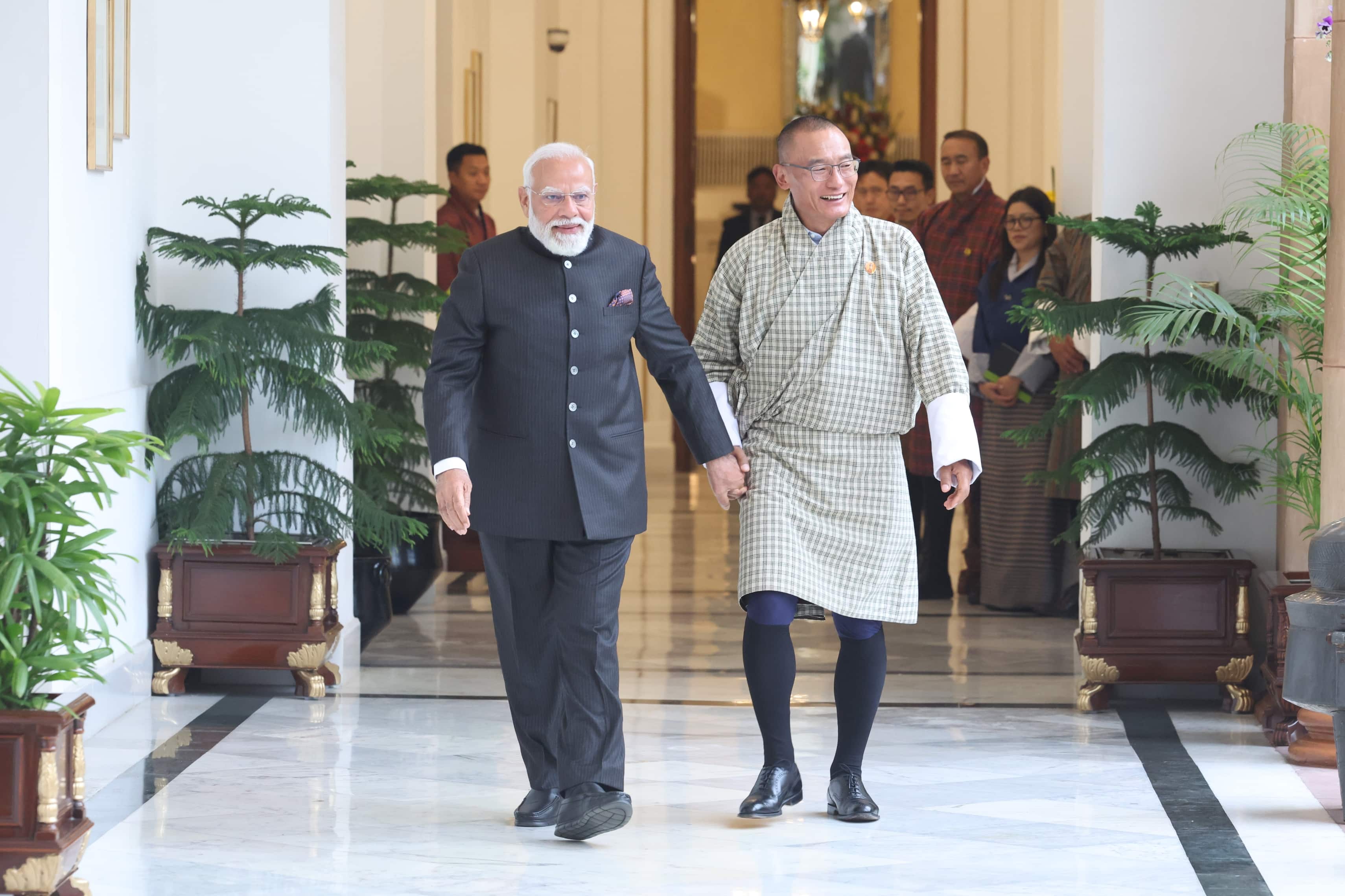 Strengthening neighbourhood ties, PM Modi meets Bhutan PM Tshering Tobgay in New Delhi.