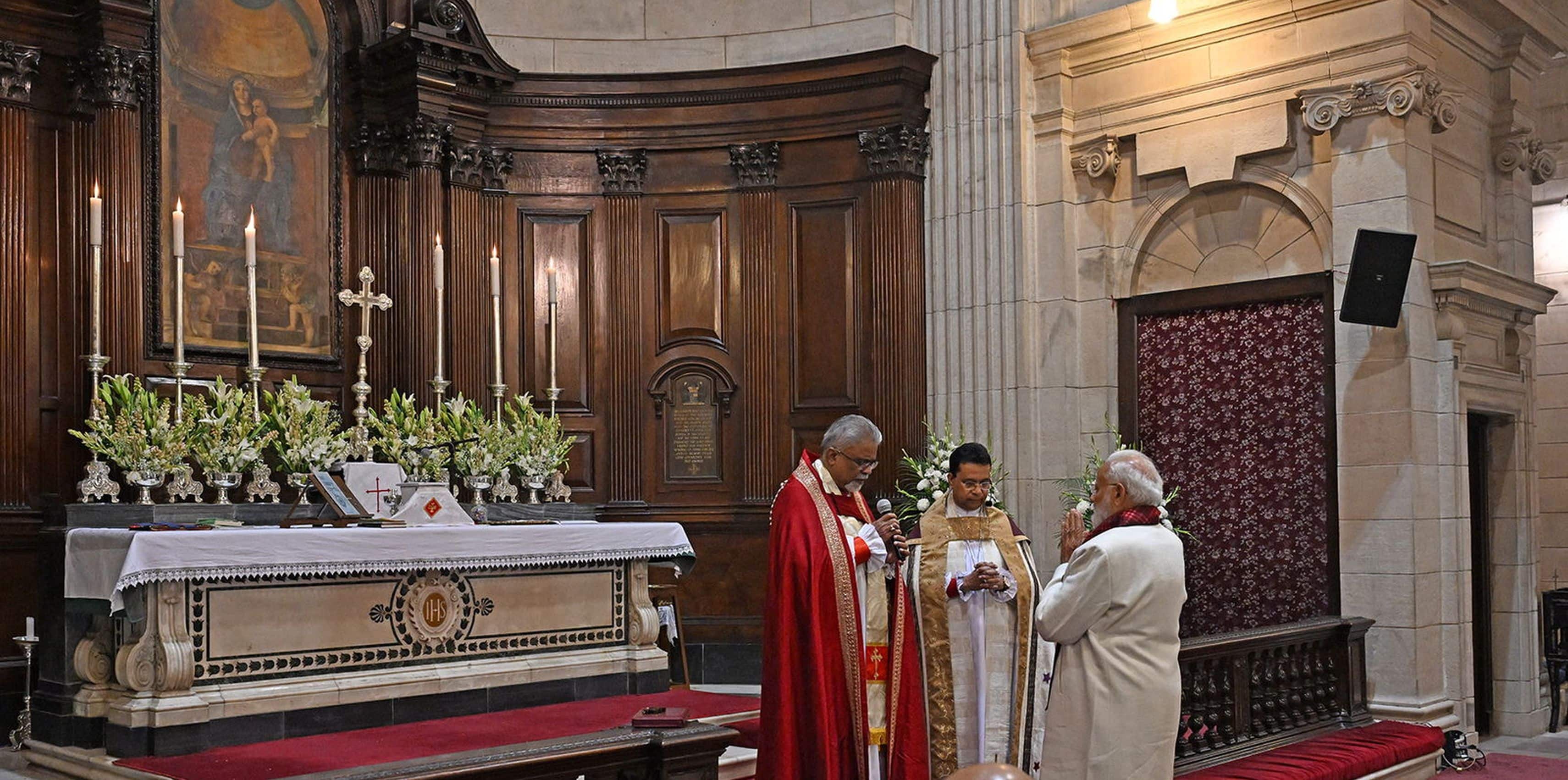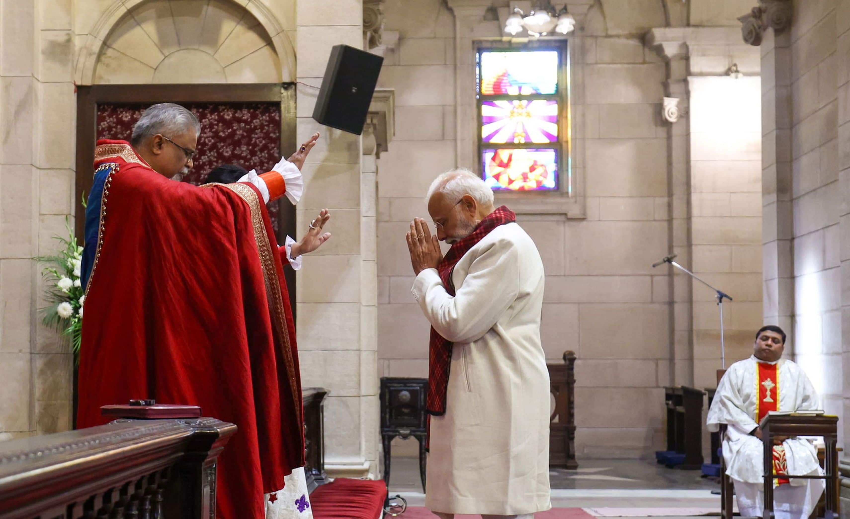 The Prime Minister, Shri Narendra Modi attended the Christmas morning service at 'The Cathedral Church of the Redemption' in Delhi, today."The service reflected the timeless message of love, peace and compassion. May the spirit of Christmas inspire harmony and goodwill in our society", Shri Modi stated.