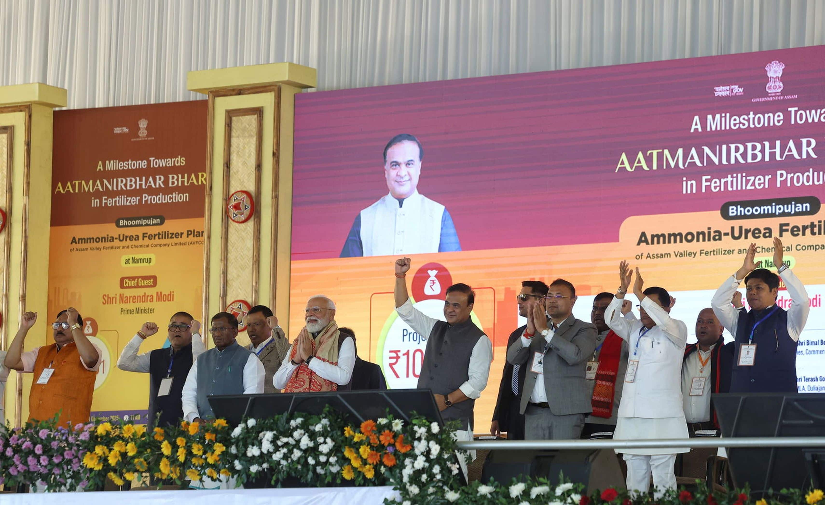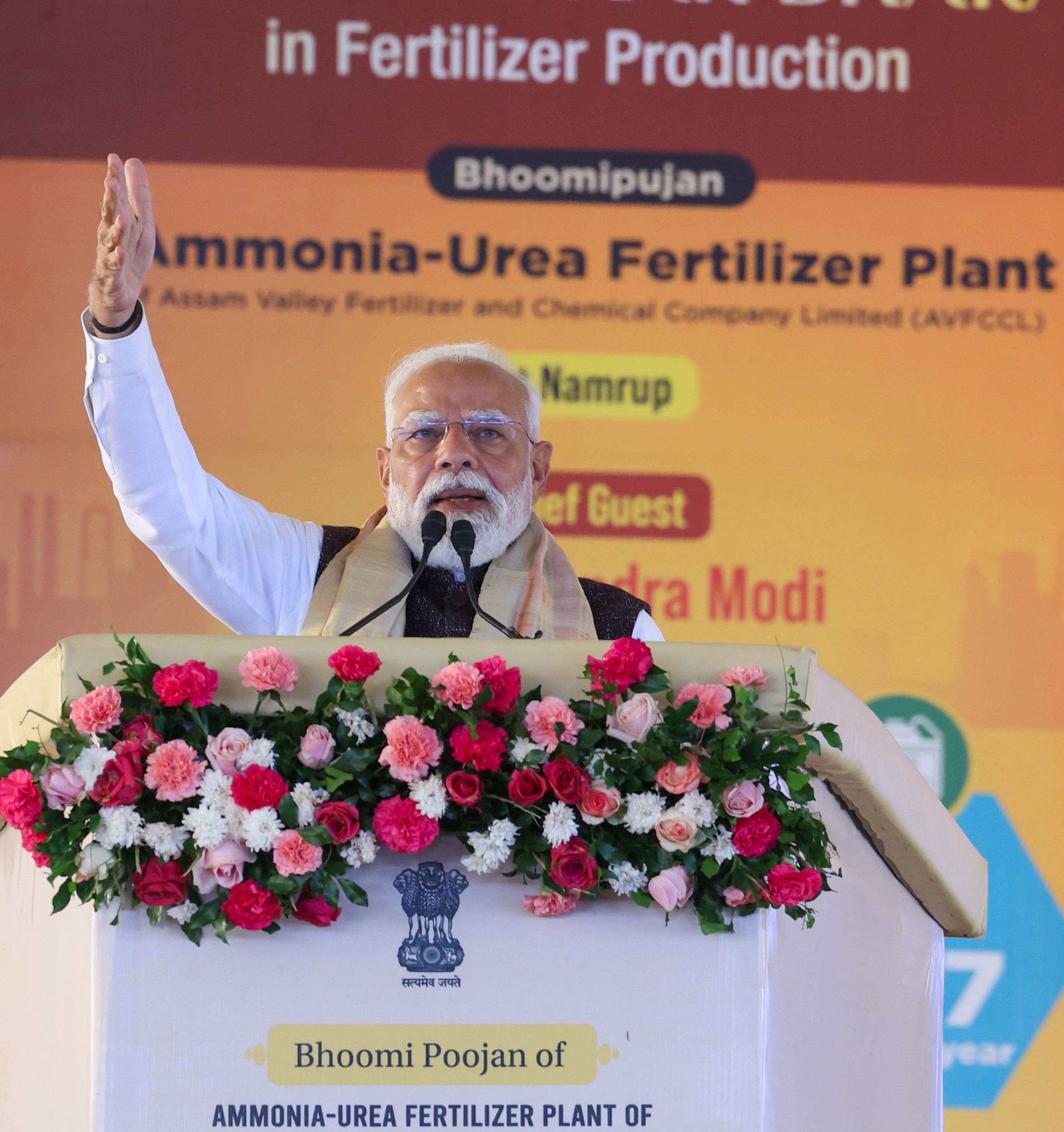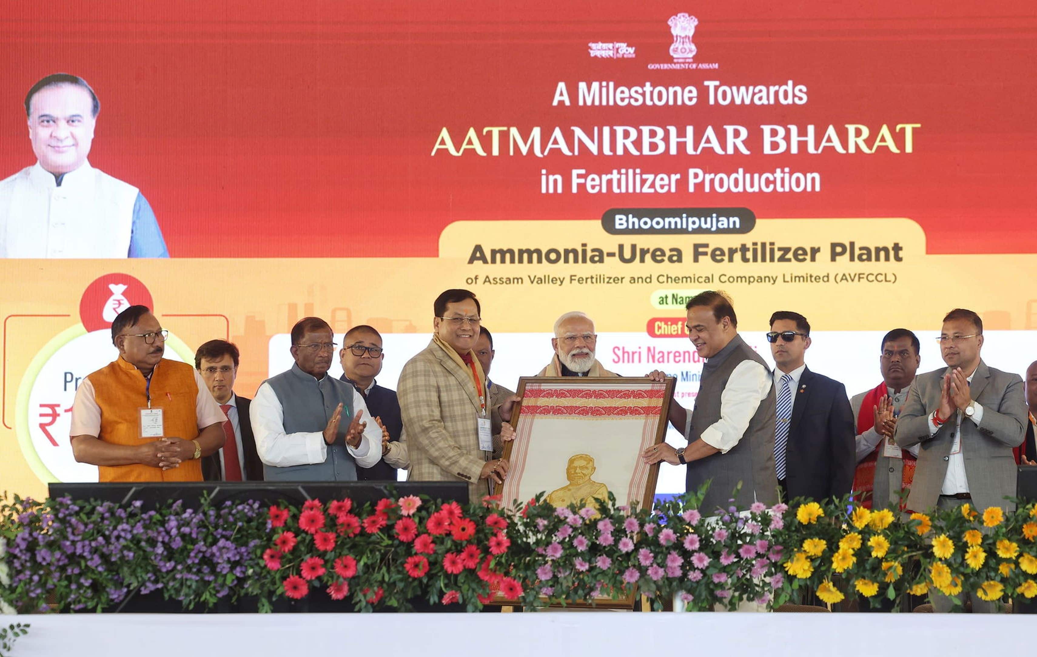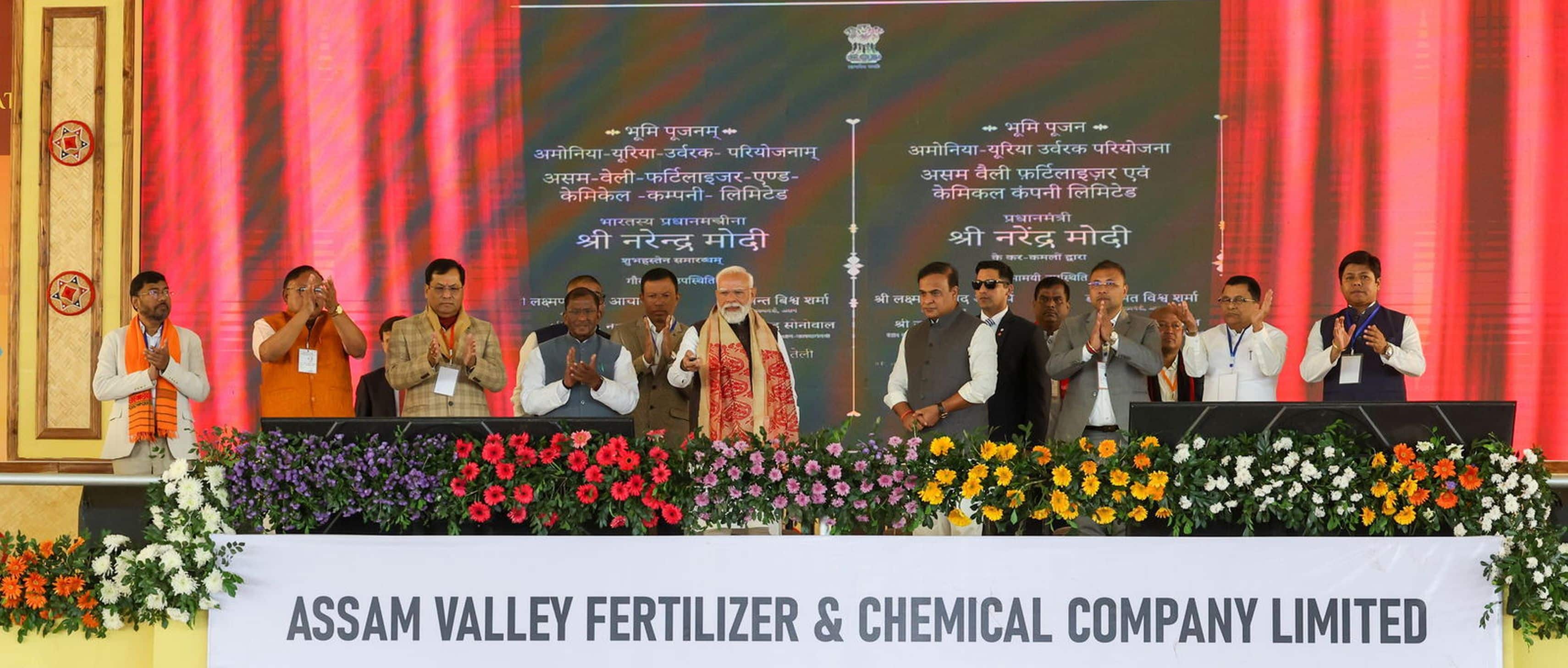 Prime Minister performed Bhoomipujan of the new brownfield Ammonia-Urea Fertilizer Project at Namrup, in Dibrugarh, Assam, within the existing premises of Brahmaputra Valley Fertilizer Corporation Limited (BVFCL).