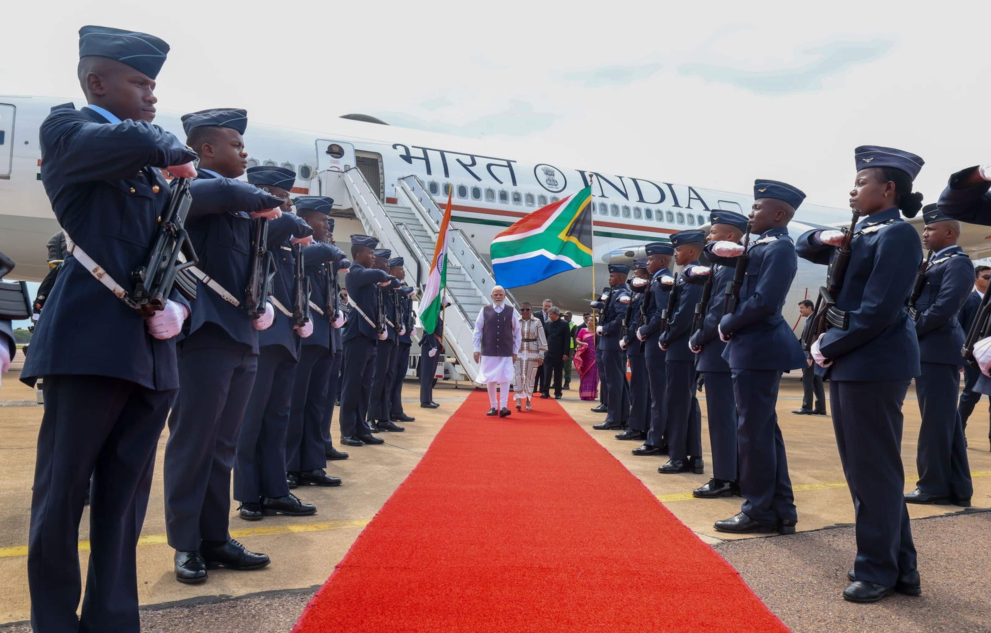 சிறிது நேரத்திற்கு முன்பு தென்னாப்பிரிக்காவின் ஜோகன்னஸ்பர்க் வந்தடைந்தார் பிரதமர் மோடி. 20வது ஜி20 தலைவர்கள் உச்சி மாநாட்டில் பிரதமர் கலந்து கொள்வார். உச்சிமாநாட்டின் ஒரு பகுதியாக, உலகத் தலைவர்களுடன் இருதரப்பு சந்திப்புகளையும் நடத்துவார், மேலும் இந்தியா-பிரேசில்-தென்னாப்பிரிக்கா (ஐபிஎஸ்ஏ) தலைவர்கள் கூட்டத்திலும் பங்கேற்பார்.