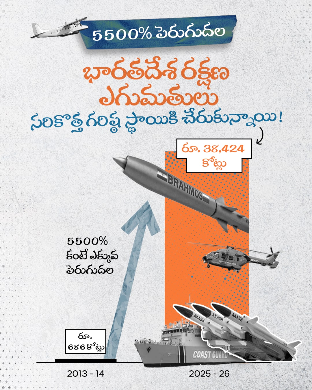 5500% పెరుగుదల: భారతదేశ రక్షణ ఎగుమతులు సరికొత్త గరిష్ఠ స్థాయికి చేరుకున్నాయి!