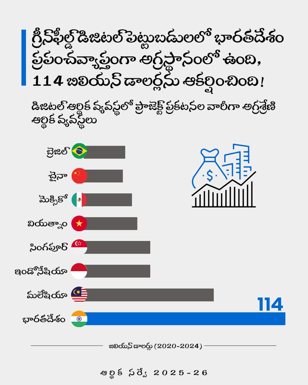 గ్రీన్ఫీల్డ్ డిజిటల్ పెట్టుబడులలో భారతదేశం ప్రపంచవ్యాప్తంగా అగ్రస్థానంలో ఉంది, 114 బిలియన్ డాలర్లను ఆకర్షించింది!